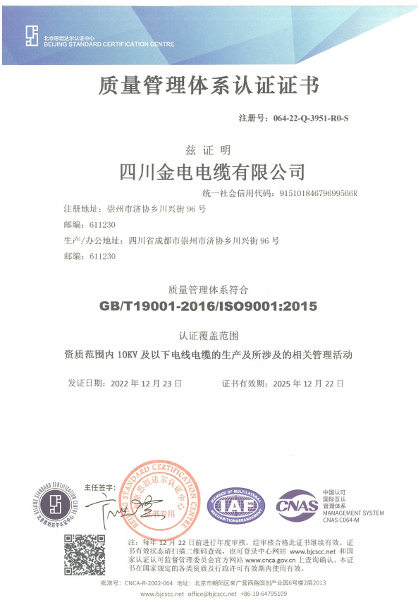 四川金電電纜有限公司位于“享譽中外”的天府之國成都市,公司始建于1998年,現擁有固定資產6000萬元,廠區占地面積17000平方米,建筑面積15000平方米,現有職工80人,科學技術人員15人,銷售人員12人,具有現代企業管理和專業技術才能。 公司擁有國內一流的線纜生產設備和質量檢測設備;建有完整、快捷的銷售和服務網絡,初步形成了“科技化生產、規范化管理、優質化服務、集約化經營”的科學發展格局。產品質量 企業以完善的質量管理通過了ISO9001:2015國際質量體系認證、ISO14001:2015國際環境質量體系認證和ISO45001:2018職業健康安全管理體系認證。全部產品均獲得國家工業部質量技術監督局頒發的生產許可證及國家強制性CCC認證。銷售網絡 公司建立完善的市場營銷體系,實施“品牌營銷和網絡營銷”相結合的發展戰略,金電產品暢銷全國各地及遠銷東南亞等國家和地區。深受廣大客戶的信賴和支持,并為眾多重點項目所選用。 公司大力推進技術創新,資本運營,國際化拓展三大戰略,全面推動金電由傳統企業向高新技術產業轉型,全力打造國際型企業,進行全球化經營。 ...